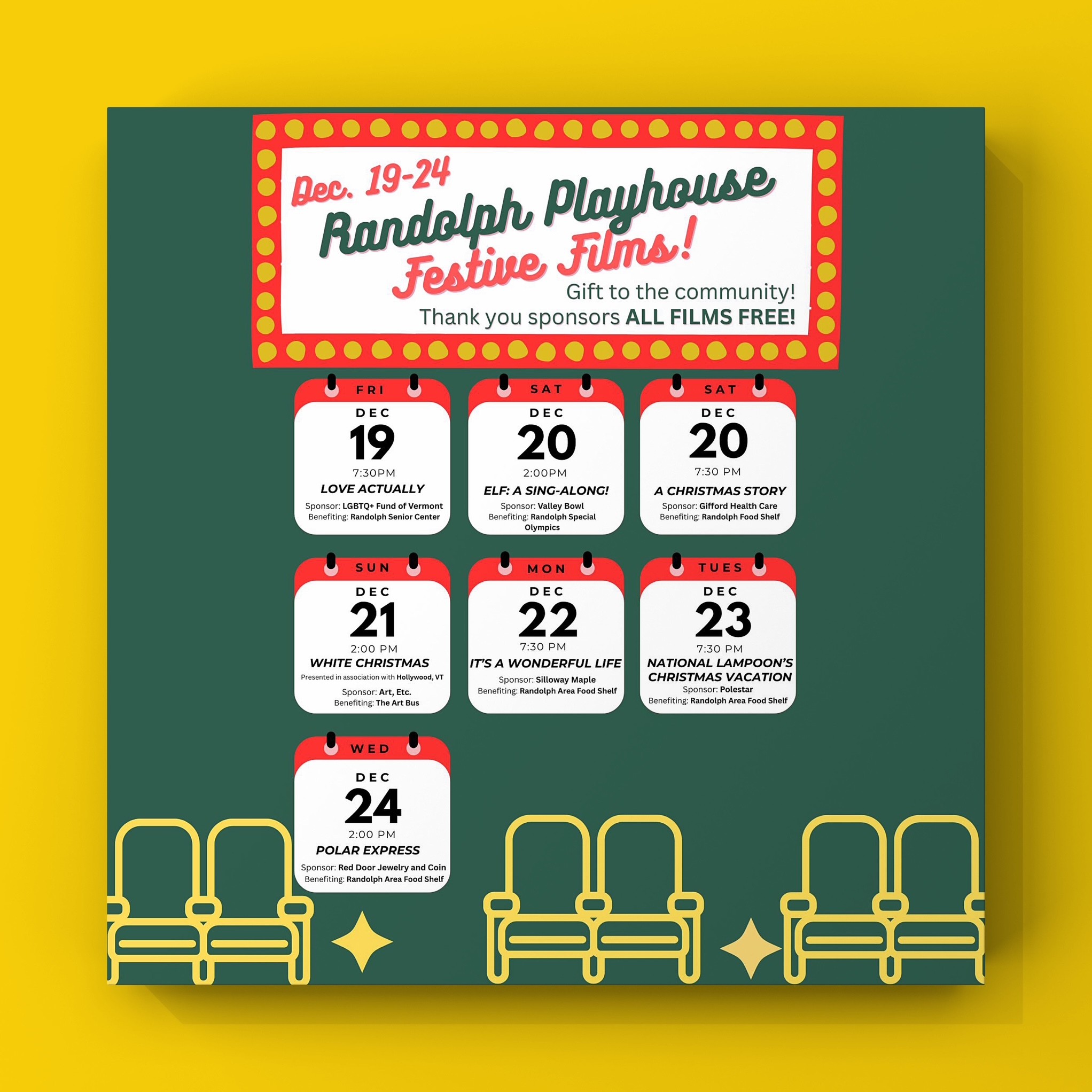 The Playhouse Movie Theater offers free holiday films through Christmas.